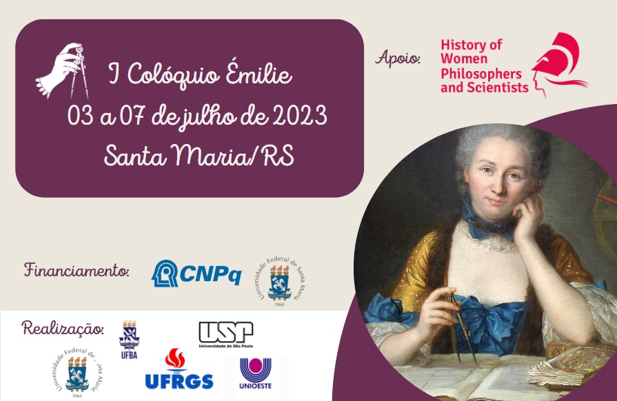 O Grupo Émilie convida todas e todos para o I Colóquio Émilie: Filosofia, contexto, tradução. O evento será realizado na Universidade Federal de Santa Maria (UFSM), de 03 a 07 de julho de 2023. O colóquio contará com os seguintes conferencistas:
